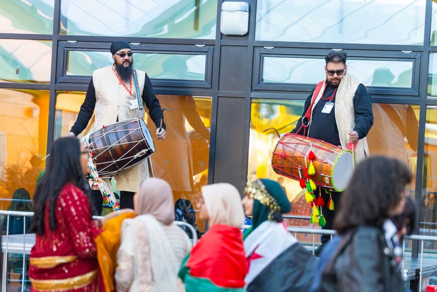Mr Walker returned to lead a celebration of dance and music, bringing an energy and joy that filled the theatre. Lunchtime saw students and staff sharing incredible food from a range of cultures – a genuine highlight – and the Punjab drummers transformed the courtyard into a festival of sound.